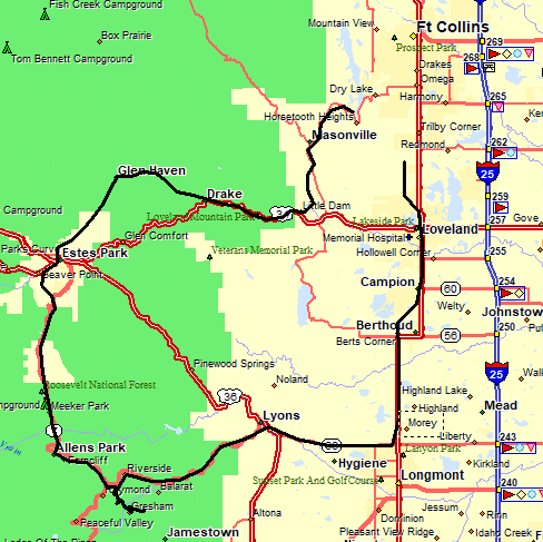 trail ride has concluded and I'm driving north on the Peak-to-Peak